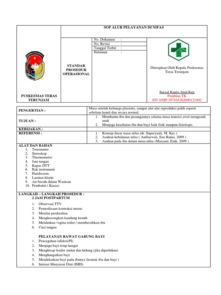 | Sop Pelayanan Di Nifas Sumber: www.scribd.com |