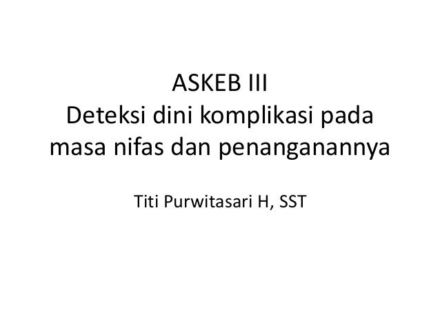 | 228753432 Deteksi Dini Komplikasi Pada Masa Nifas Dan Penanganannya Sumber: www.slideshare.net |