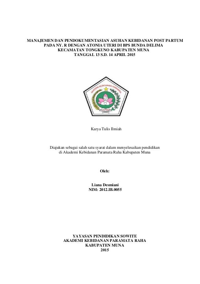 | Asuhan Kebidanan Ibu Nifas Dengan Perdarahan Karena Atonia Uteri Sumber: studylibid.com |