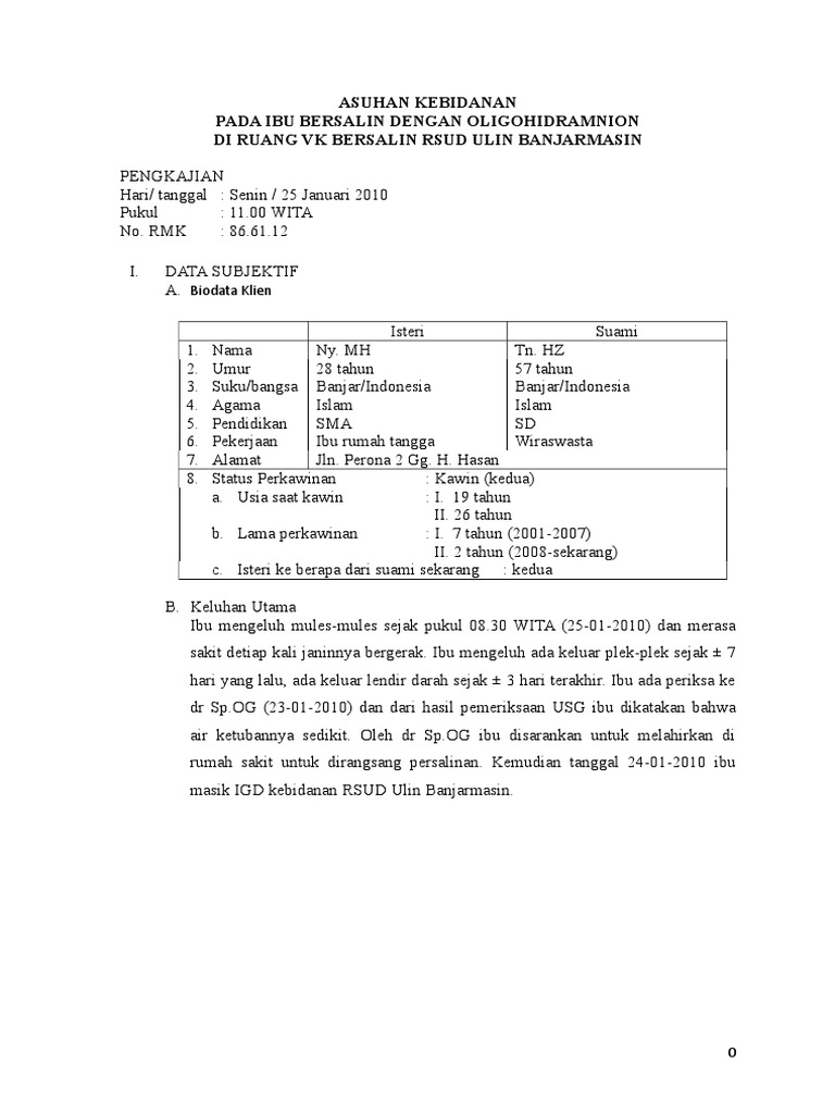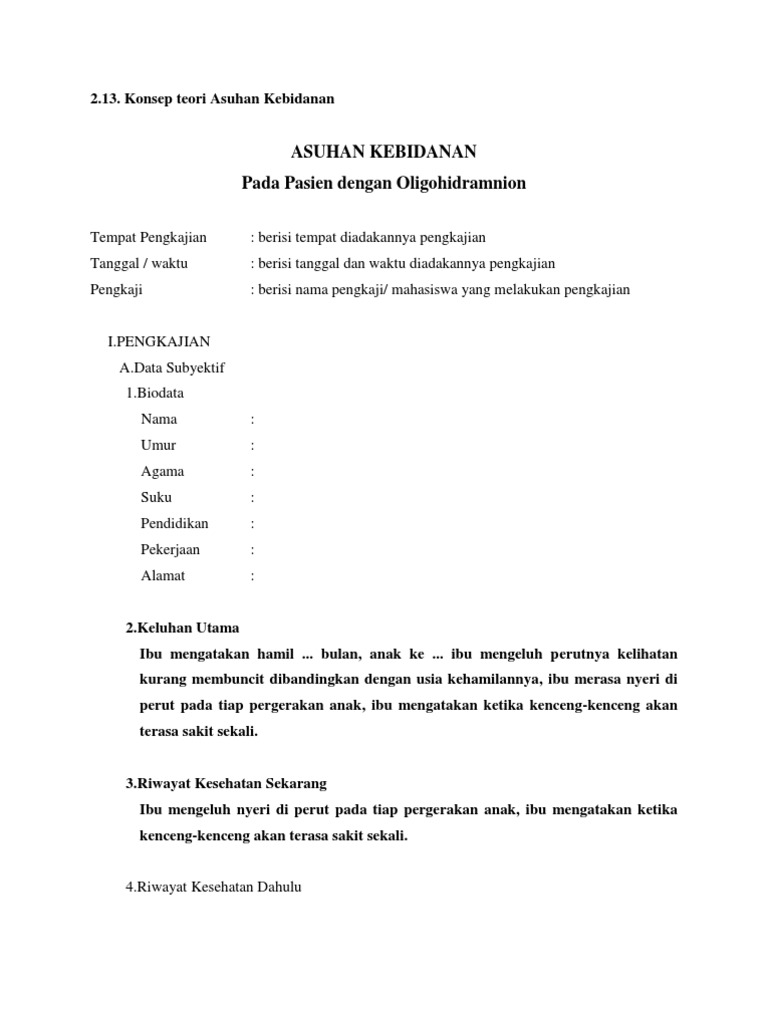 | Asuhan Kebidanan Pada Ibu Bersalin Dengan Oligohidramnion Doc Sumber: www.scribd.com |