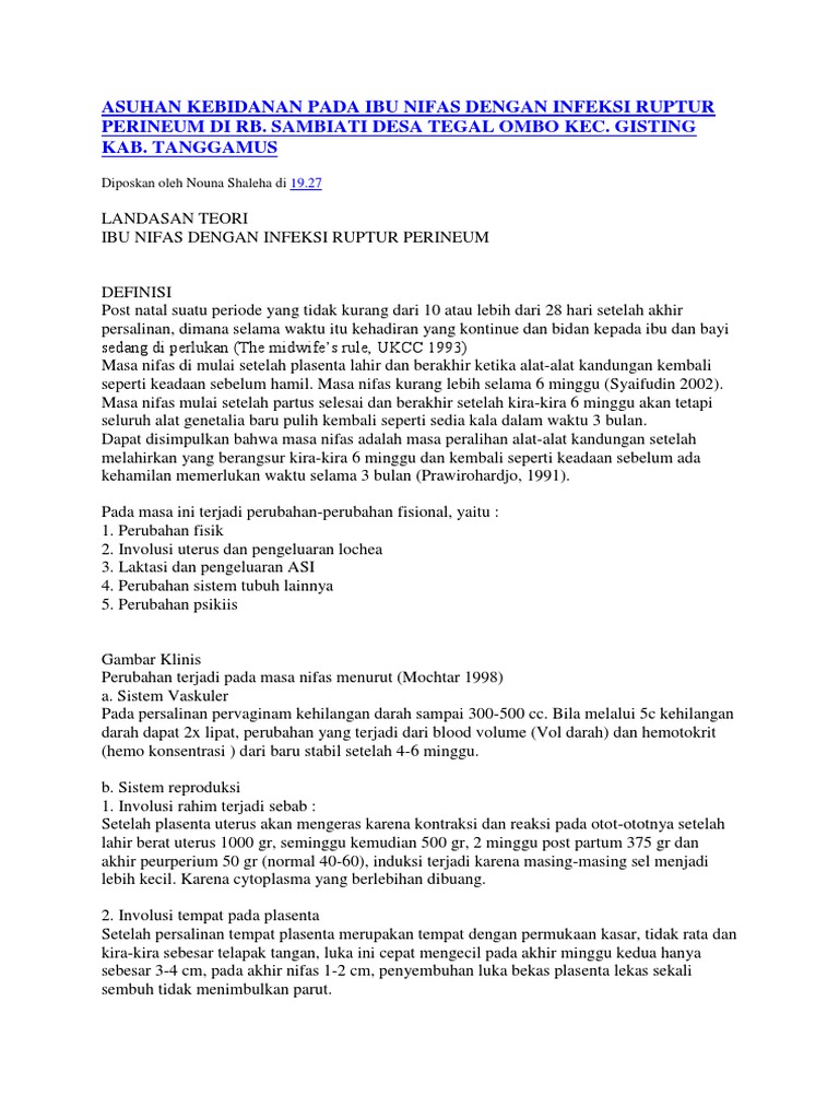 | Asuhan Kebidanan Pada Ibu Nifas Dengan Infeksi Ruptur Perineum Di Rb Sumber: pt.scribd.com |