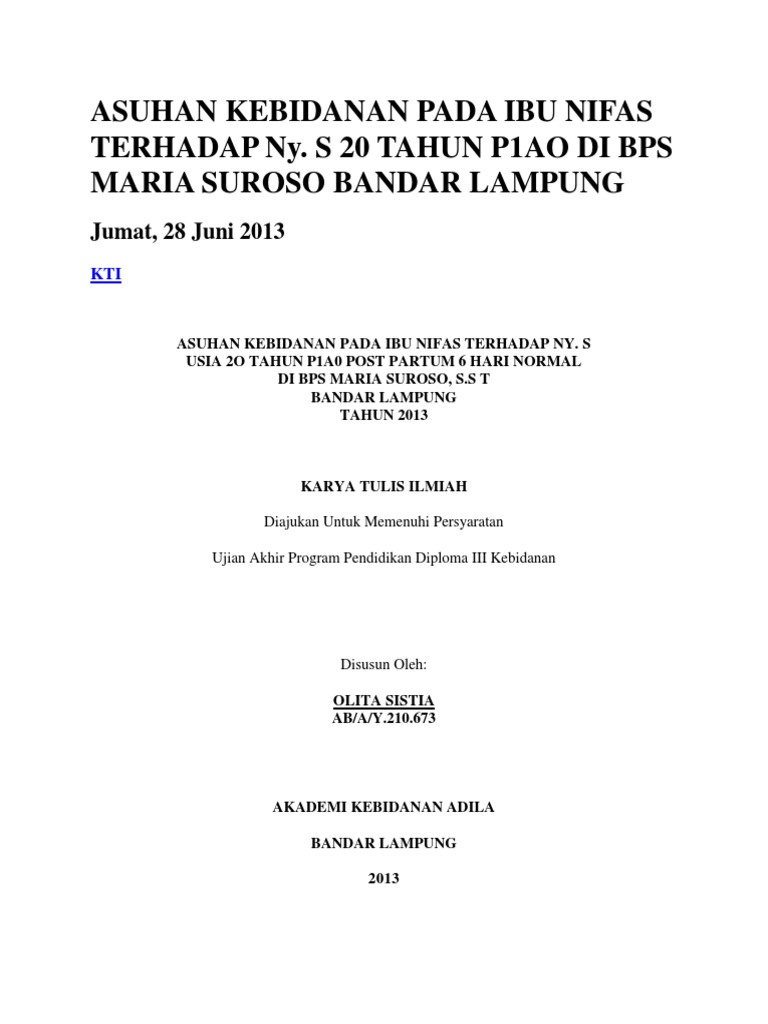 | Contoh Laporan Kasus Nifas Menggunakan Langkah Varne1 Sumber: www.slideshare.net |