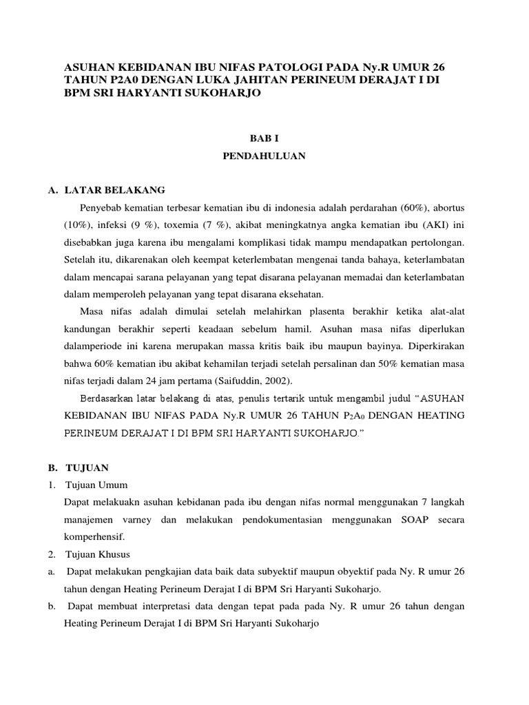 | Asuhan Kebidanan Pada Ibu Nifas Dengan Luka Perineum Terhadap Ny Sumber: es.scribd.com |