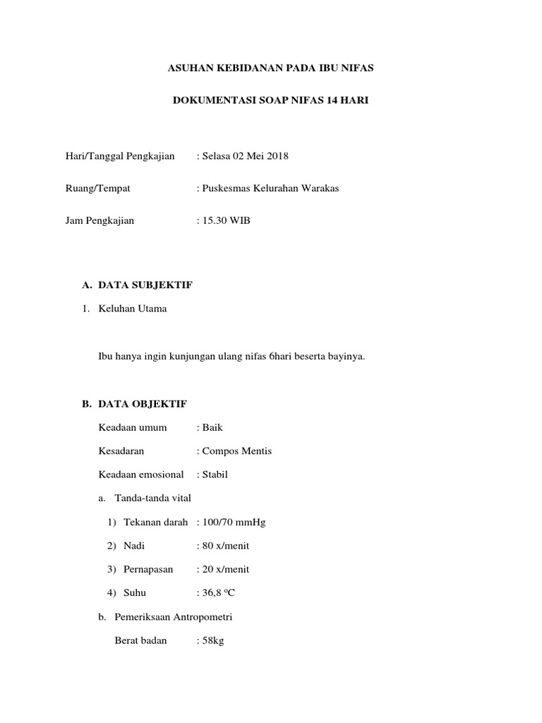 | Contoh Pendokumentasian Soap Pada Masa Nifas Normal Sumber: www.scribd.com |