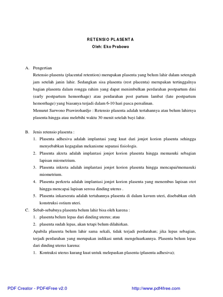 | Retensio Sisa Plasenta Sumber: id.scribd.com |