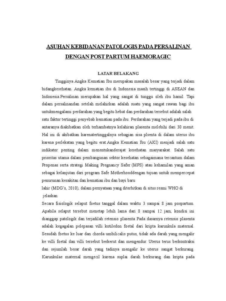 | Nifas Dengan Perdarahan Postpartum Primer Karena Sisa Plasenta Docx Sumber: es.scribd.com |