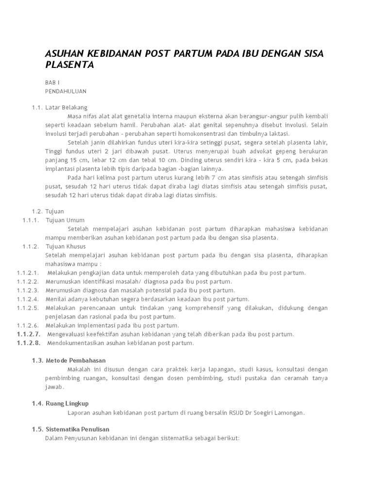 | Dokumen Tips Asuhan Kebidanan Post Partum Pada Ibu Dengan Sisa Sumber: www.scribd.com |