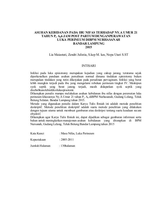 Asuhan kebidanan nifas. Post partum hari pertama dengan dengan nyeri luka perineum tingkat iii. Oleh karena itu penyusun membuat askeb yang berjudul asuhan kebidanan pada nys p10001 5 hari post partum dengan nyeri luka perineum.