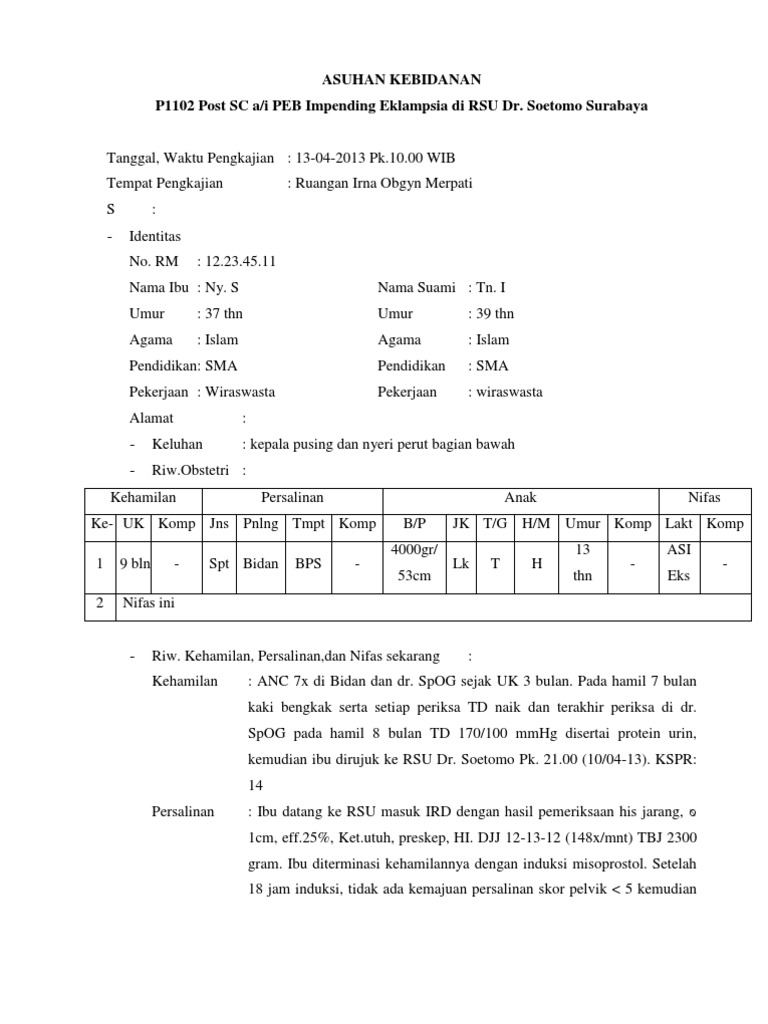 | Contoh Pendokumentasian Soap Pada Masa Nifas Normal Sumber: www.scribd.com |