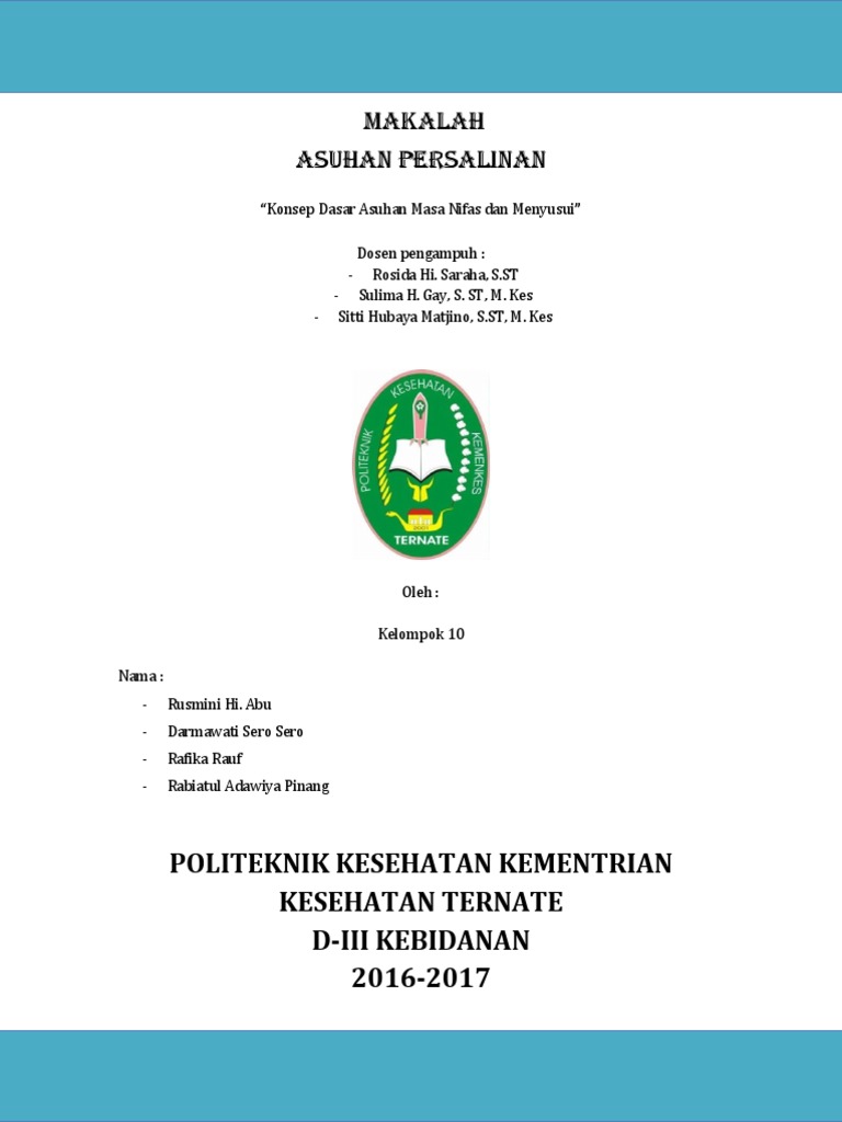 . Dengan adanya mata kuliah asuhan kebidanan nifas askeb. Dan menyusui menyebutkan macam. Selama 24 jamdiikuti pemberian uterus tonika dan antibiotika selama.