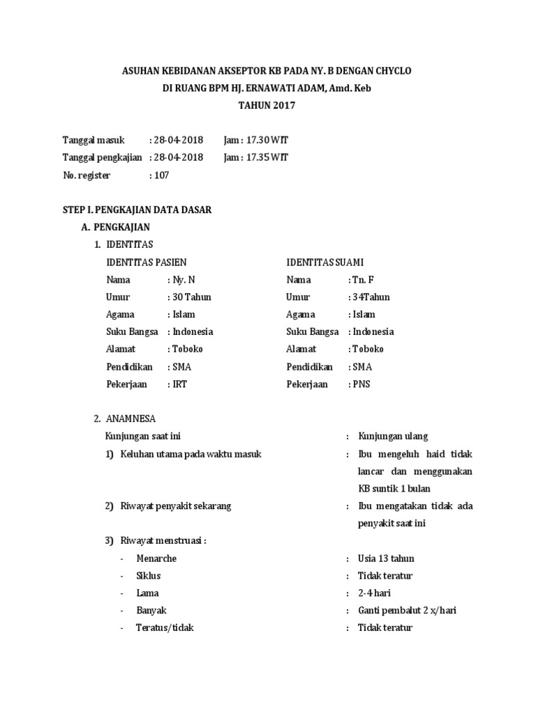 | Asuhan Kebidanan Akseptor Kb Pada Ny Docx Sumber: www.scribd.com |