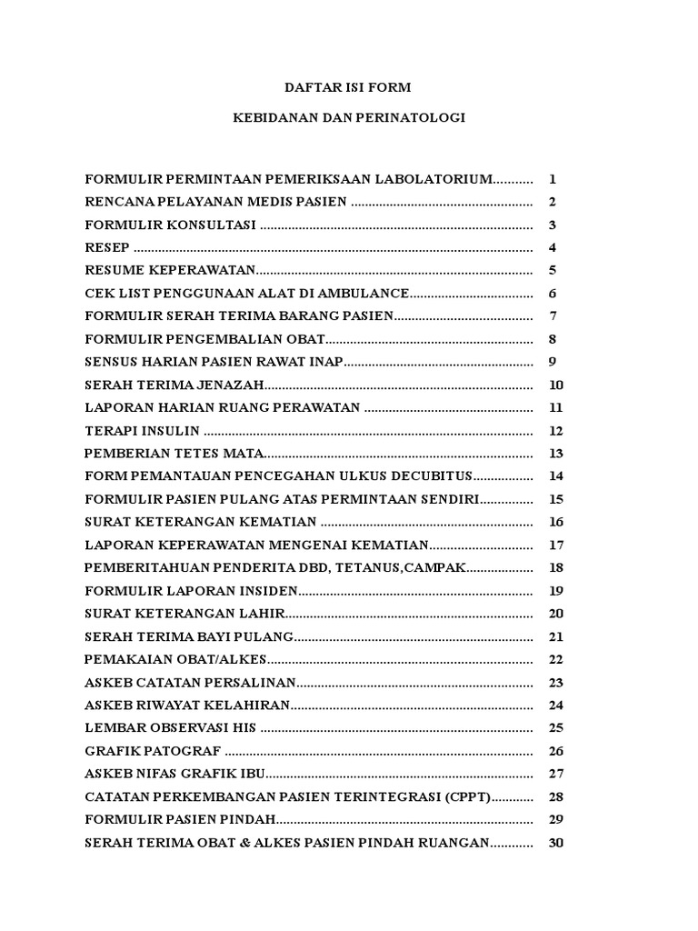 | Daftar Isi Form Kebidanan Sumber: www.scribd.com |