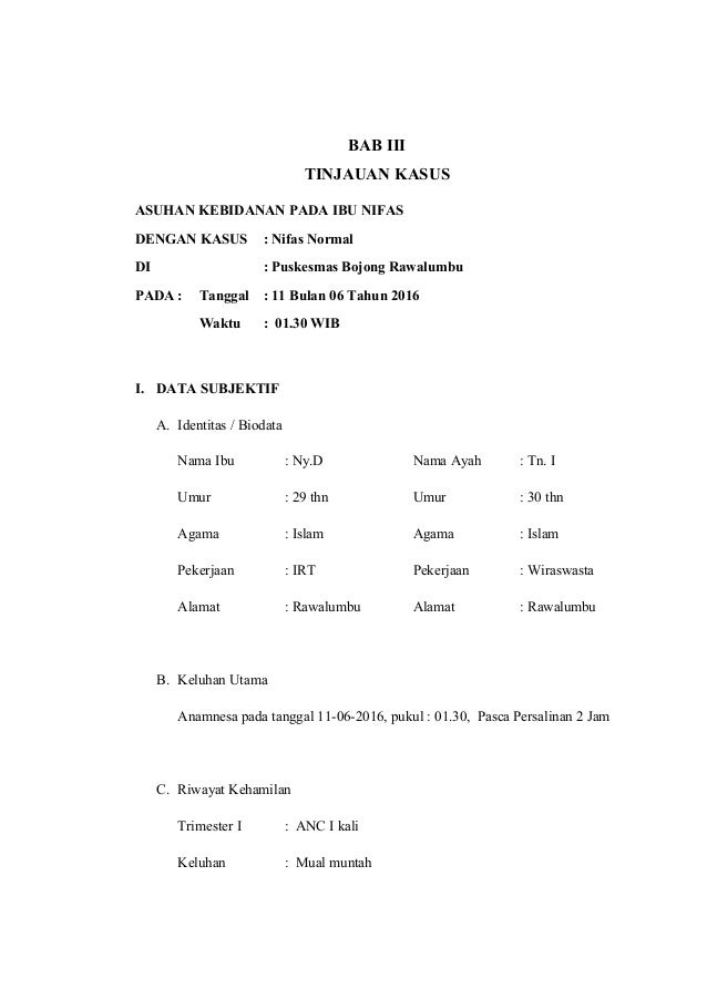 | Contoh Laporan Kasus Nifas Menggunakan Langkah Varne1 Sumber: www.slideshare.net |