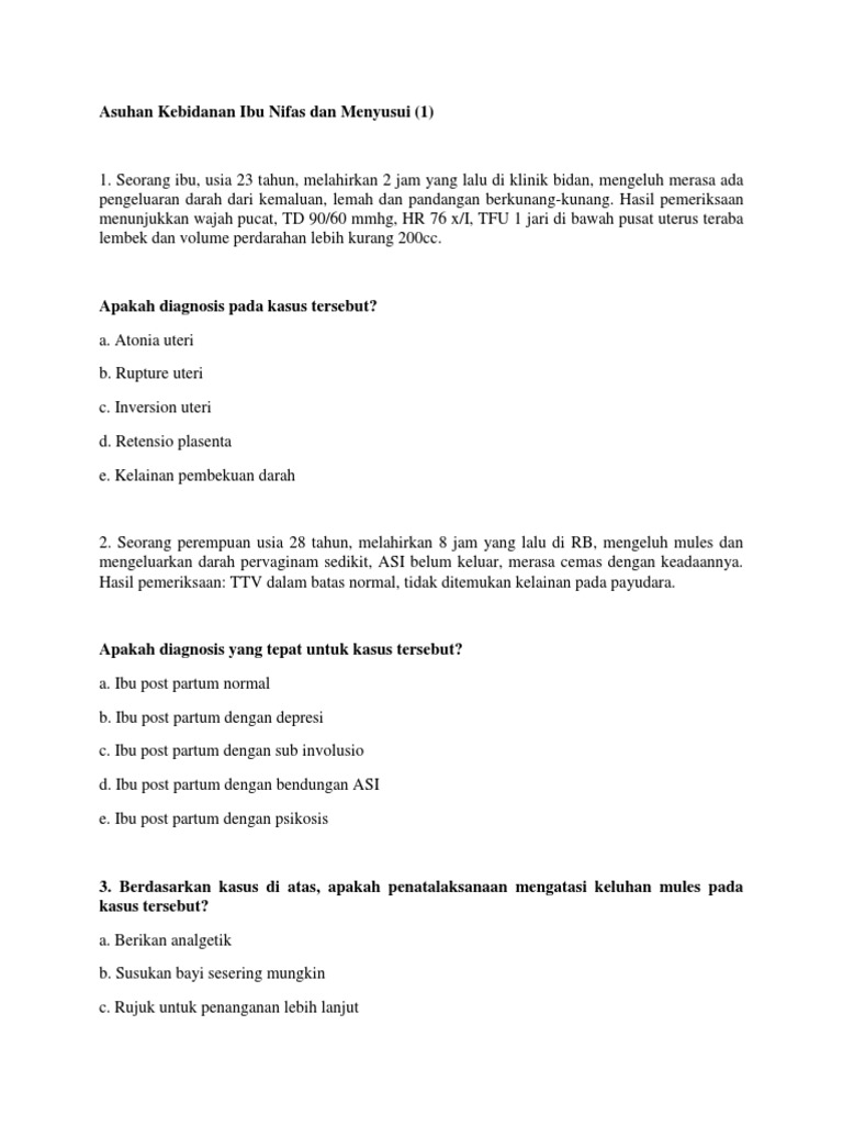 | Contoh Soal Asuhan Kebidanan Ibu Nifas Dan Menyusui Sumber: id.scribd.com |