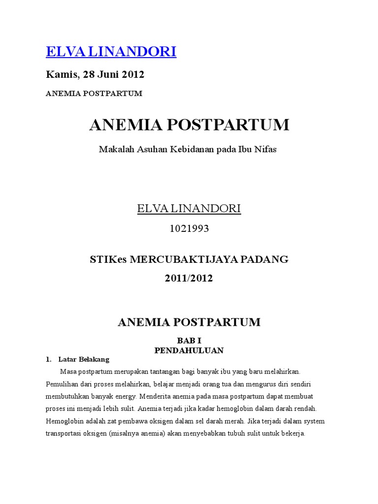 | Anemia Post Partum Sumber: pt.scribd.com |