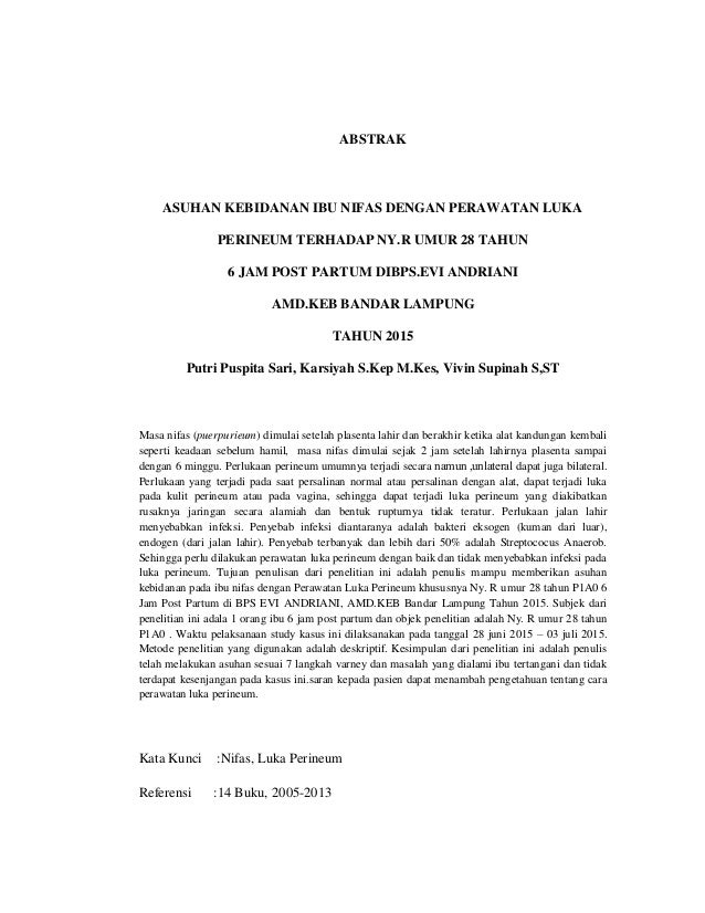 | Contoh Asuhan Kebidanan Pada Ibu Nifas Luka Perineum Sumber: es.scribd.com |