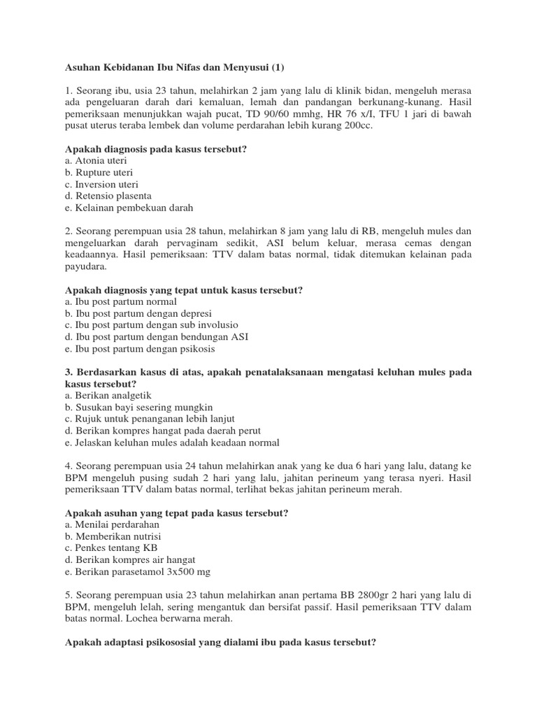 | Soal Asuhan Kebidanan Ibu Nifas Dan Menyusui Sumber: www.scribd.com |