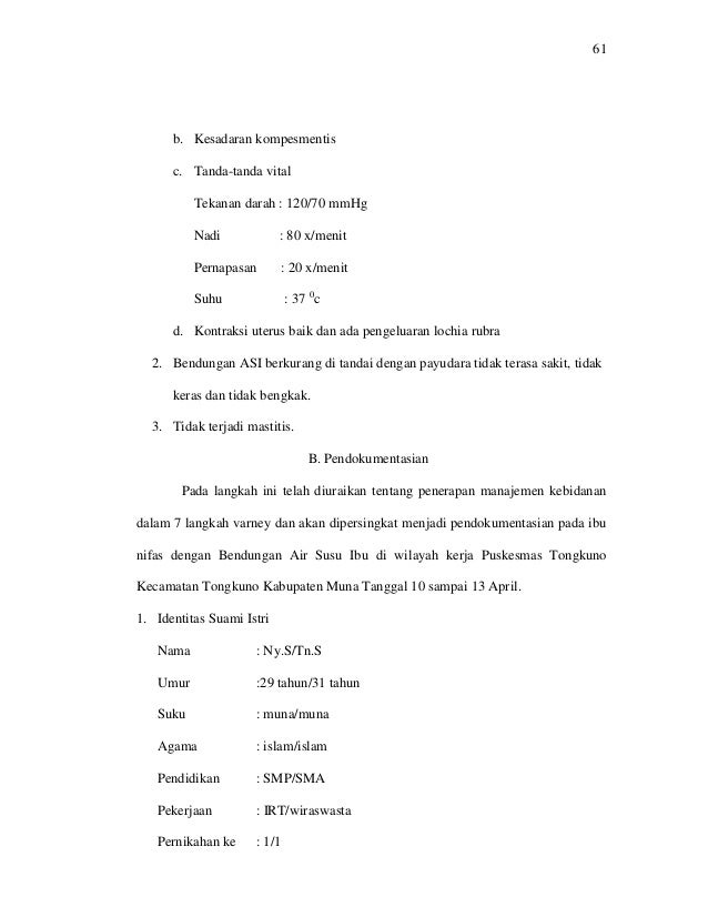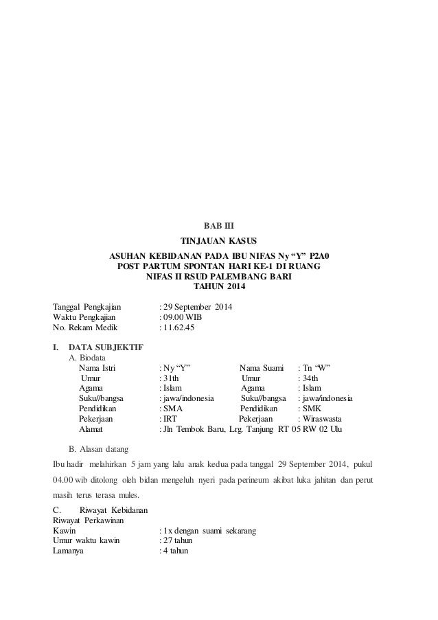 Contoh askeb nifas published februari. 1 pertama lama menikah. Tidak ada komplikasi masa nifas seperti perdarahan post partum.