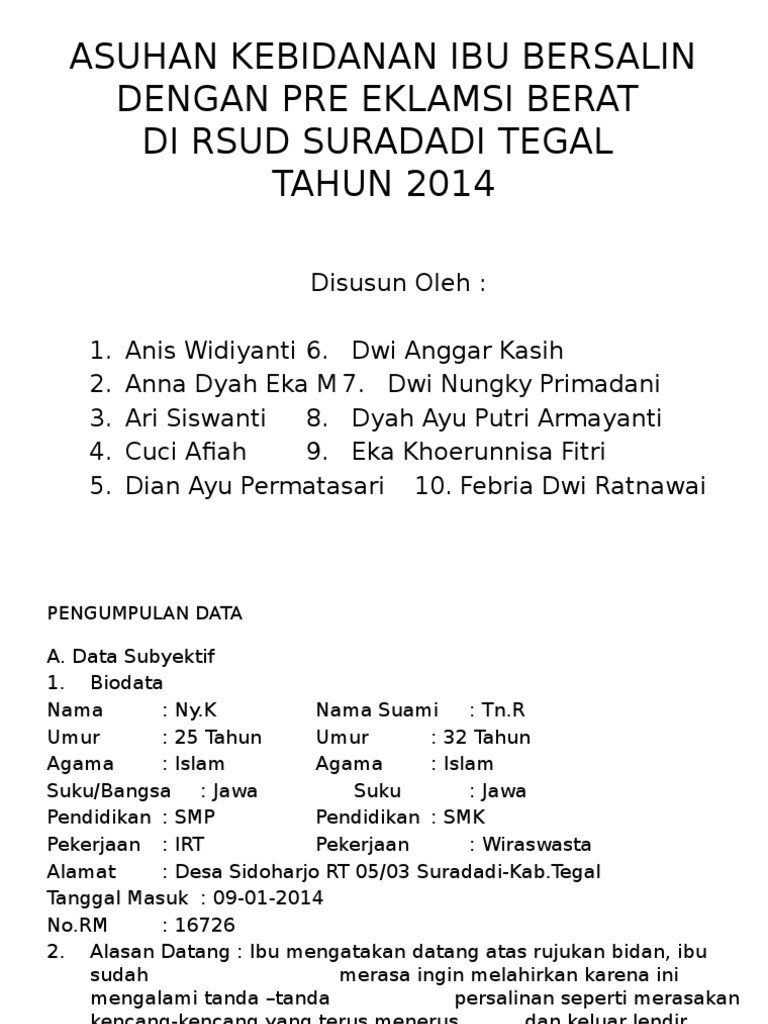 | Asuhan Kebidanan Ibu Nifas Patologi Dengan Preeklamsi Berat Pada Ny Sumber: anzdoc.com |