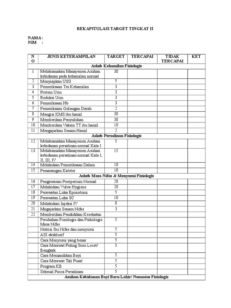 | Rekapitulasi Target Tingkat I1 Sumber: www.scribd.com |